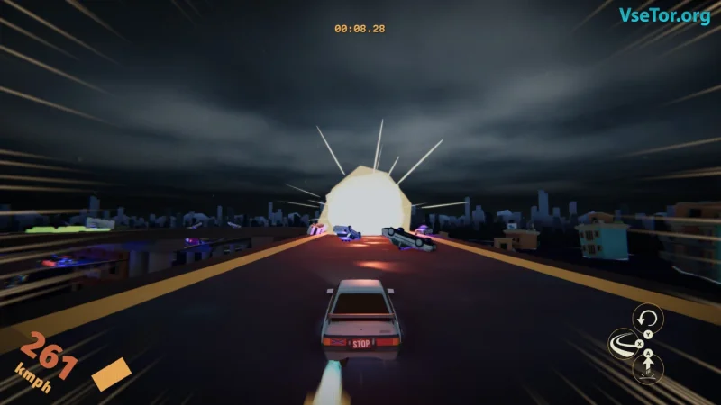 - Механика управления автомобилем, включая дрифт, прыжки и столкновения с препятствиями.