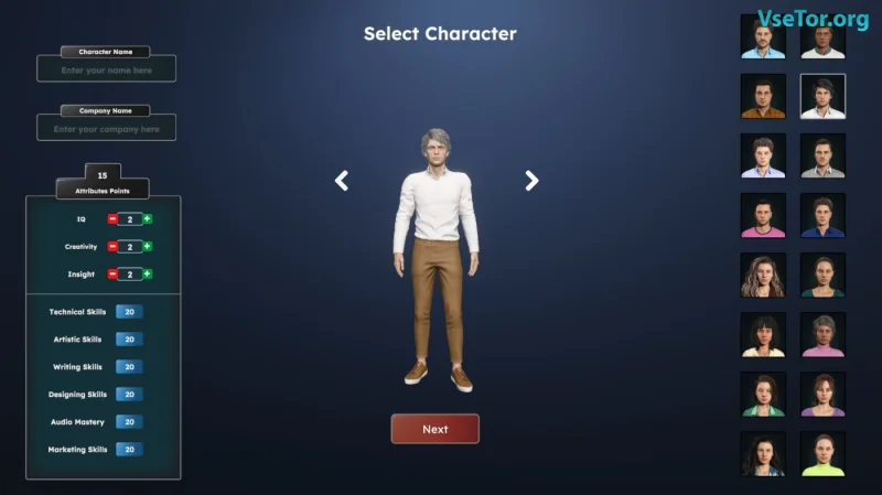 Начало приключения в Game Builder Tycoon начинается с создания вашего персонажа. Вам предстоит выбрать, кем вы хотите стать — программистом или художником. Это решение повлияет на развитие вашей студии и доступные вам жанры игр на старте. Вы сможете создавать уникальные проекты, выбирая жанры, тематики, платформы и художественные стили, что станет ключевым фактором для успеха вашего бизнеса.