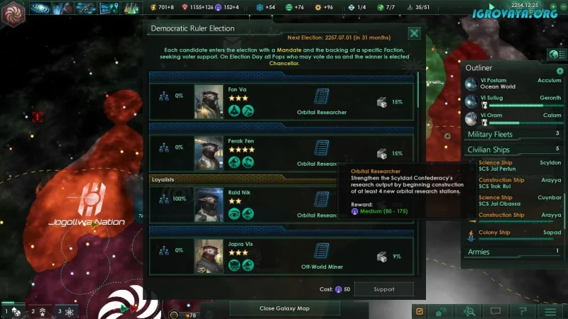 В начале вам предстоит создать собственного персонажа, выбирая его расу, этику, принципы и типы межзвёздных путешествий. Также важно определить форму правления и другие ключевые аспекты. После этого вы сможете погрузиться в игру, начав с изучения космоса и освоения основных механик. Только овладев всеми нюансами Stellaris, вы сможете перейти к более сложным задачам.