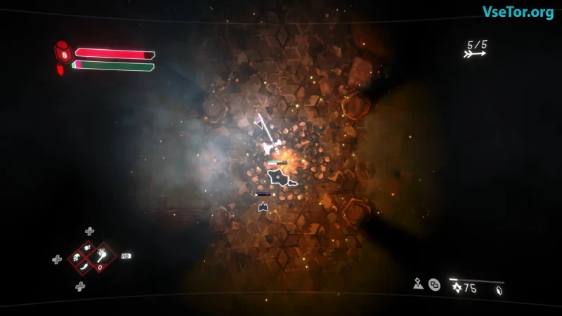 Void Sols — это стильная минималистичная игра в жанре soulslike, в которой вы управляете таинственным треугольником. В темном и опасном мире вам предстоит сразиться с геометрическими врагами, преодолевая множество ловушек и угроз. Главный герой попадает в зловещую тюрьму, где лишь редкие факелы освещают путь, а ваше выживание зависит от мастерства в битвах с противниками.