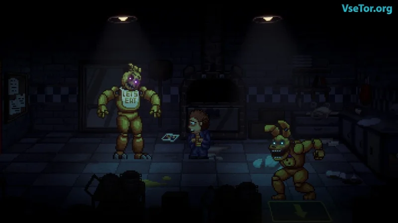 - Захватывающая пиксельная графика с детализированными аниматрониками