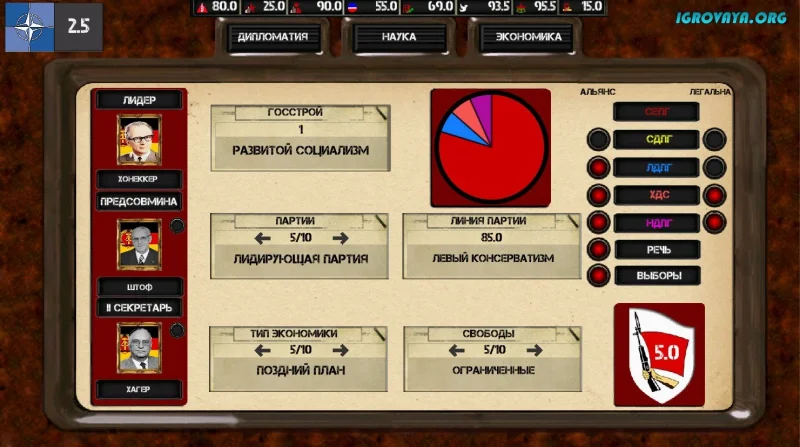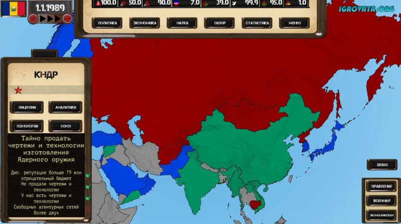 Ostalgie: The Berlin Wall – это захватывающий политический симулятор, который перенесет вас в turbulentные 1980-е, позволяя вам проявить свои лидерские качества. В этом увлекательном проекте вам предстоит взять на себя управление одной из стран, столкнувшись с множеством вызовов и задач, которые предстоит решить.