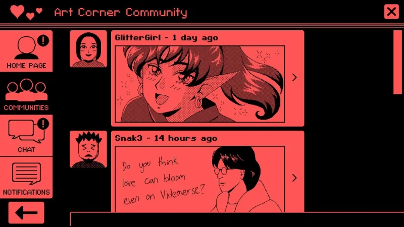 VIDEOVERSE — это увлекательная игра, погружающая вас в атмосферу прошлых лет, когда интернет только начинал завоевывать популярность. Вы отправитесь в эпоху, когда общение происходило на форумах, а развлечения зависели от простых программ. Вам предстоит заводить знакомства в сети, поддерживать полезные связи и наблюдать, как происходящие изменения технологий влияют на развитие персонажей.