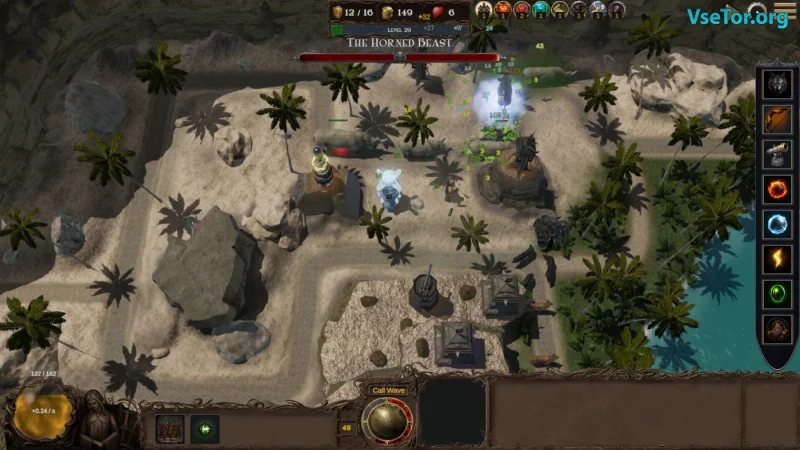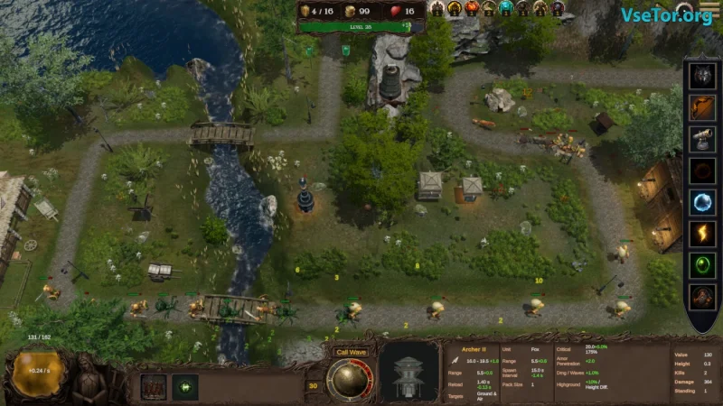 - Разнообразие заклинаний, включая вызов метеоров и усиление подкреплений.