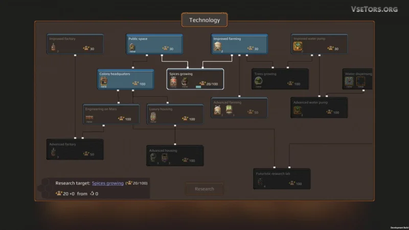 Марс, известный как Красная планета, стал первой целью для колонизации. Его пустынные просторы не скрывают ни жизни, ни воды, ни зелени. Однако вы возьмете на себя ответственность за строительство и организацию колонии на этой бесплодной земле. Начните с создания базовой инфраструктуры, привлекайте колонистов и развивайте свою базу так, чтобы ваша колония ни в чем не уступала другим.