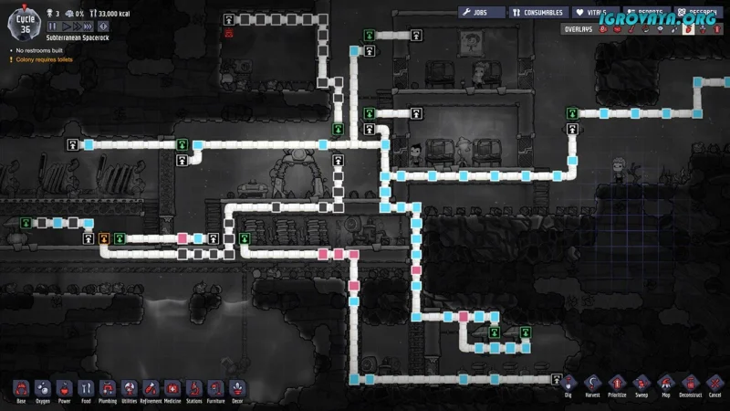 Суть игры заключается в том, что вам нужно управлять жизнью множества поселенцев на космической базе, справляясь с постоянными трудностями. Каждое ваше решение ведет к новым проблемам, что делает процесс игры поистине захватывающим. Например, вы можете заняться созданием оборудования для производства пищи, чтобы дупликанты не страдали от голода. Однако, решив эту задачу, вы столкнетесь с другой: отходы, которые образуются при поедании пищи, могут нанести вред вашим поселенцам и даже угрожать их жизни.