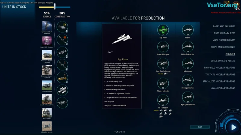 События в ICBM: Escalation охватывают широкий спектр времени: от достаточно холодной войны до ярких футуристических сражений. Технологии в игре эволюционируют, начиная с простейших радаров и заканчивая сложными спутниковыми системами и стелс-флотами. Вам предстоит важный выбор: улучшать ядерные ракеты или акцентировать внимание на расширении армии, чтобы противостоять вражеским атакам. Время на принятие решений крайне ограничено: ресурсы истощаются, а каждая ошибка может обернуться катастрофой.