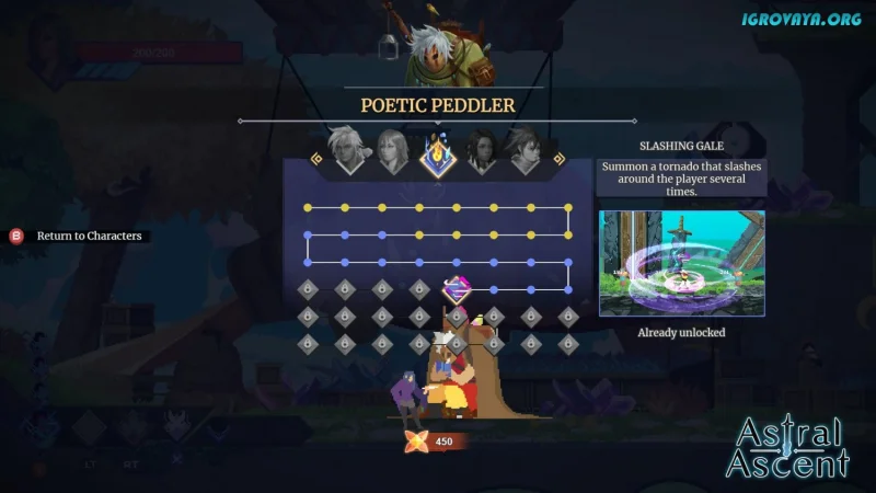 Побеждая соперников, вы не только повышаете уровень своего персонажа, но и видите, как мир вокруг вас трансформируется. С каждым вашим достижением враги становятся сильнее, создавая настоящие вызовы. Уделяйте внимание диалогам со второстепенными персонажами, ведь они могут поведать вам о секретах, слухах о сокровищах и слабостях боссов. Погрузитесь в мир Astral Ascent и откройте для себя его тайны!