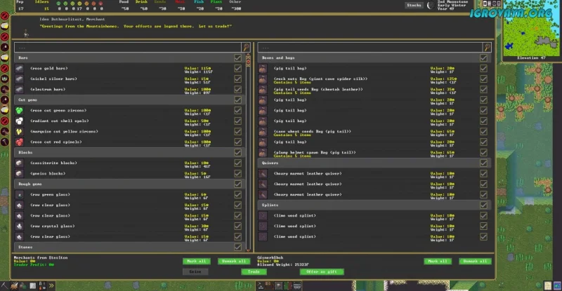 Начать свое приключение в Dwarf Fortress можно с создания мира, который можно генерировать в автоматическом режиме. Далее открывается невероятный потенциал для наблюдения за изменениями в мире, появлениями и исчезновениями цивилизаций, а также захватывающими сражениями между гномами. И, конечно, вы сами сможете активно участвовать в происходящих событиях, что делает игру еще более увлекательной.