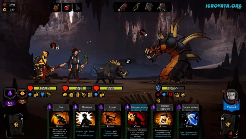 - Пошаговые карточные сражения с уникальными тактическими элементами.