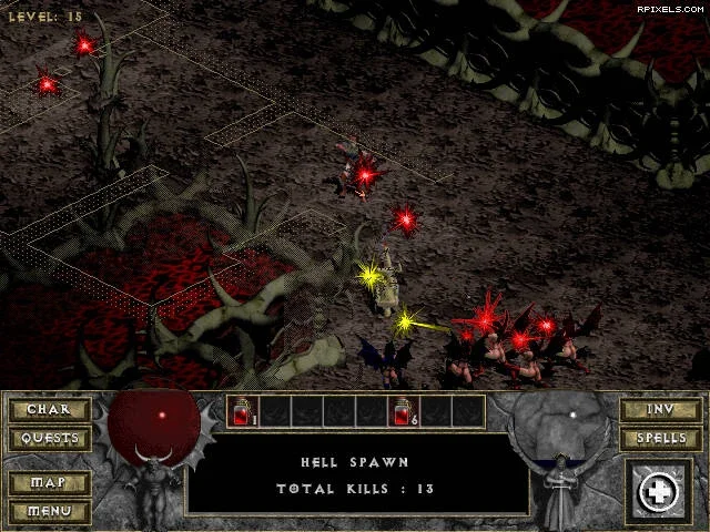 Геймплей Diablo 1 представляет собой классическую аркаду с элементами ролевой игры, где каждое ваше движение в подземельях полнится неожиданностями. Каждый уровень генерируется случайным образом, что делает каждую игровую сессию уникальной. Вы будете исследовать зловещие подземелья, находить магическое снаряжение и сражаться с ужасными монстрами. Уровни будут усложняться, а враги становиться сильнее, требуя от игрока мудрости и стратегического мышления.