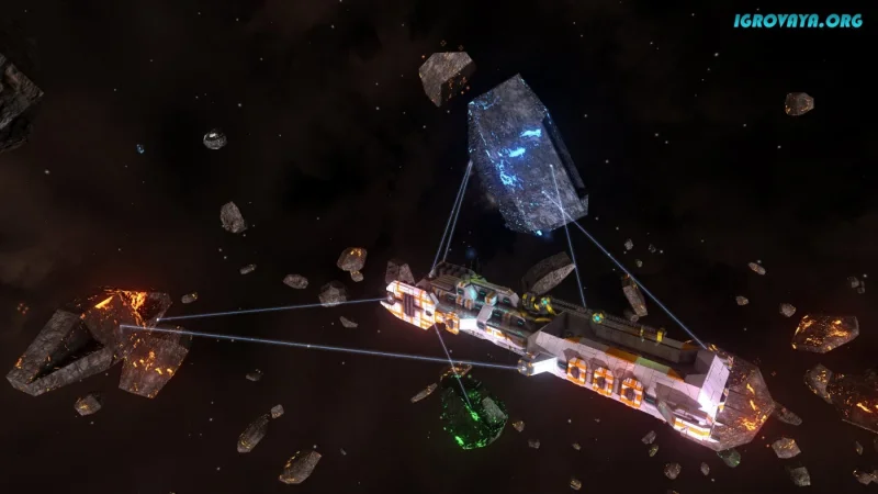 - Добыча ресурсов из астероидов и на планетах для создания новых кораблей.