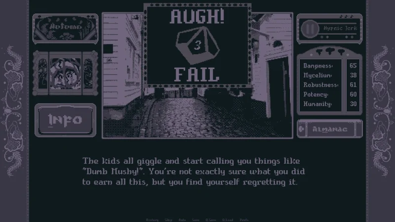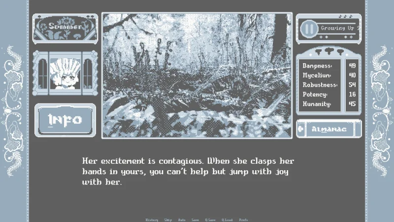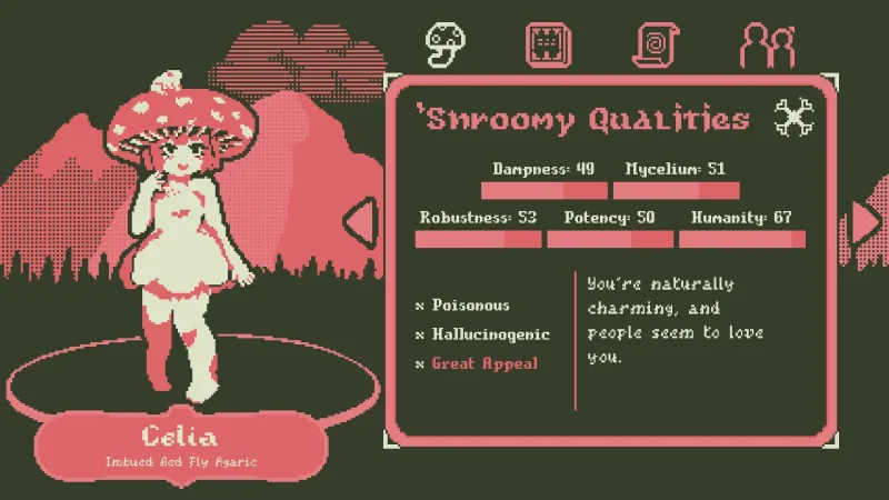 В ходе игры вы откроете для себя таинственный мир грибов и сможете выбирать, какой именно вид вы хотите вырастить. Выбор грибка значительно влияет на черты характера вашей будущей дочки. Однако будьте внимательны: чрезмерная влага или отсутствие воды могут привести к гибели вашего подопечного, и тогда вам придётся начинать выращивание сначала. Игра оформлена в пиксельном стиле, что придаёт ей неповторимый ретро-шарм. Станьте настоящим грибоводом, но помните, что ваши создания не предназначены для продажи! Вырастите целую коллекцию грибочков и создайте собственное потомство, которое порадует вас!