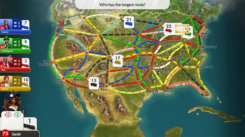 Ticket to Ride 2023 — это современное продолжение классической настольной игры, где участники сражаются за звание величайшего железнодорожного магната. Главная задача игроков заключается в строительстве длиннейших и наиболее прибыльных железных дорог, соединяющих различные города и регионы. Чем же отличается Ticket to Ride 2023 от своих предшественников? В первую очередь, это превосходная графика и обновленный дизайн игрового поля. Каждая карта представлена с высокой детализацией, а визуальные элементы поражают своей реалистичностью. Игроки смогут погрузиться в атмосферу настоящего железнодорожного предприятия, исследуя живописные местности и создавая свою уникальную империю.
