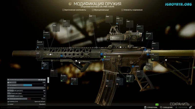 - Модификация оружия с помощью различных деталей и приспособлений.