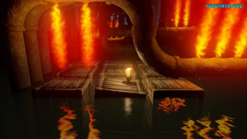 - Возможность зажигать свечу для освещения пути и активации чек-поинтов.