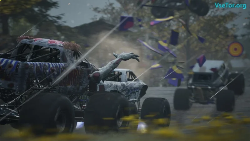 - Уникальные трассы: грязевые, песчаные и ледяные маршруты для разнообразия гонок.