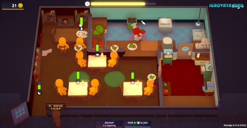 PlateUp! представляет собой захватывающую комбинацию кулинарного управления и стратегии с элементами рогалика. Стартуйте свою карьеру в ресторанной сфере, создавая небольшое заведение с несколькими столиками. Постепенно увеличивайте масштаб бизнеса, разрабатывая оригинальное меню и уникальные блюда, а также приобретая современное оборудование для кухни.