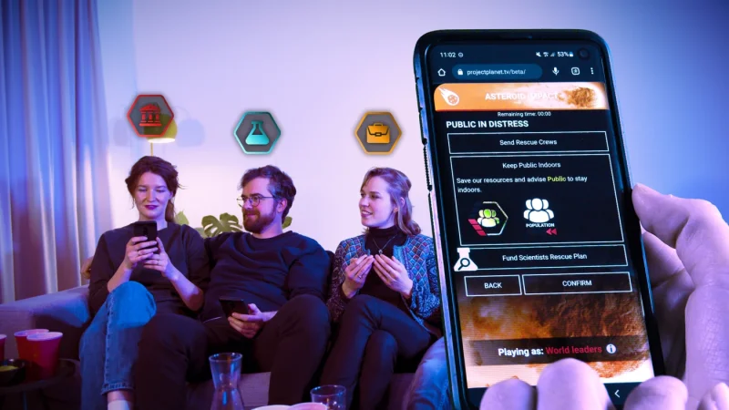 Геймплей основывается на взаимодействии и принятии решений. Каждый раунд игры начинается с новой катастрофы, спровоцированной Землей, на которую человечество должно реагировать своими действиями. Игроки имеют возможность выбирать между кооперацией для борьбы с угрозами или конкуренцией для усиления своих позиций. Уникальность Project Planet заключается в динамичном развитии сюжета, наполненном множеством событий и последствий, напрямую зависящих от решений, принимаемых игроками.