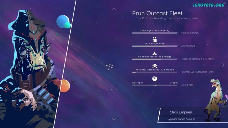 The Fermi Paradox предлагает игрокам уникальную атмосферу, полную неожиданных поворотов и захватывающих ситуаций. Игра не отличается чрезмерной сложностью, но именно её увлекательная подача и разнообразие событий погружают в мир, где каждое ваше действие имеет значение.