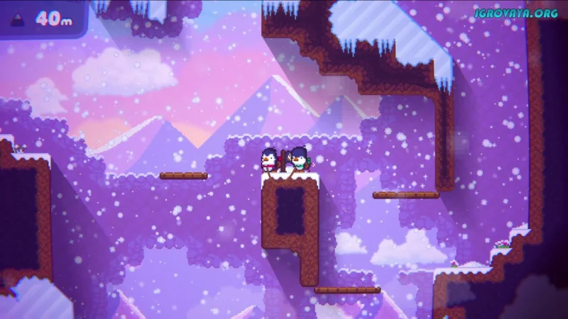 Игра Bread & Fred — это очаровательный пиксельный платформер, который идеально подходит для совместного времяпрепровождения с друзьями. Вам предстоит сопровождать забавных пингвинов Бреда и Фреда на пути к заснеженной вершине горы. Однако не стоит ожидать легкой прогулки: на каждом шагу вас поджидают разнообразные испытания, которые проверят не только ваши навыки управления, но и крепость дружеских уз. Будьте внимательны и действуйте с осторожностью, ведь ошибка может привести к падению и необходимости начинать всё сначала.