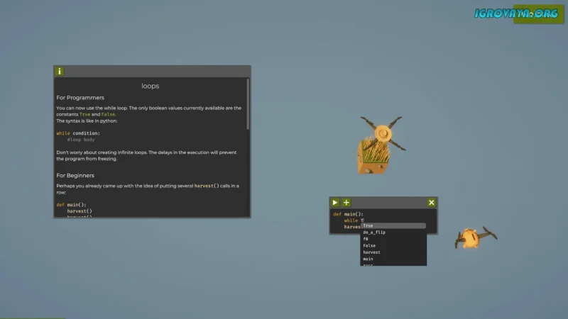 Игра The Farmer Was Replaced является увлекательной головоломкой, в которой акцент сделан на программирование. В этом проекте вам предстоит управлять уникальным фермером будущего с помощью логического мышления. С развитием технологий, автоматизация охватывает все сферы, и сельское хозяйство — не исключение. Теперь трудоемкие задачи будут выполнять беспилотные дроны, которые не устают и выполняют указания с точностью. Оставьте физическую работу в прошлом и насладитесь интеллектуальным процессом управления своей фермой.