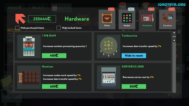 Однако головоломки — это не единственная задача. Вам также предстоит вести жизнь программиста, выполнять онлайн-заказы, зарабатывать деньги и делать покупки. Занятий будет предостаточно, чтобы не заскучать!