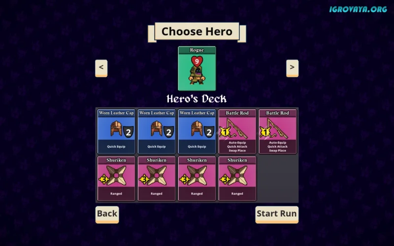 Неудивительно, что креативный геймплей Lost For Swords способен затянуть вас на долгие часы. Каждое ваше решение оказывает значительное влияние на ход игры. Путешествуя по игровому полю, вы открываете новые карты и выбираете, какие предметы экипировать или на каких врагов нападать, чтобы очистить пространство и получить доступ к следующему набору карт. Продолжайте исследовать до тех пор, пока не доберетесь до выхода из подземелья.