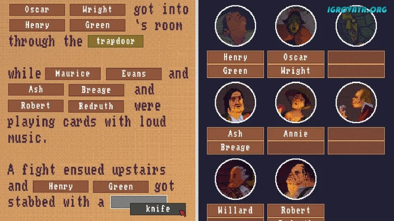 В The Case of the Golden Idol вам предстоит стать настоящим сыщиком в мире мистических расследований. Эта увлекательная приключенческая игра погружает вас в атмосферу загадки, где за долгие годы в старинном особняке произошло множество таинственных убийств, и преступник до сих пор не найден. Вам предстоит взять на себя роль детектива и разобраться в запутанных событиях, восстанавливая каждую сцену преступления, чтобы найти ключ к разгадке.