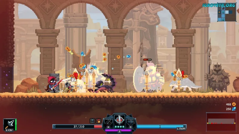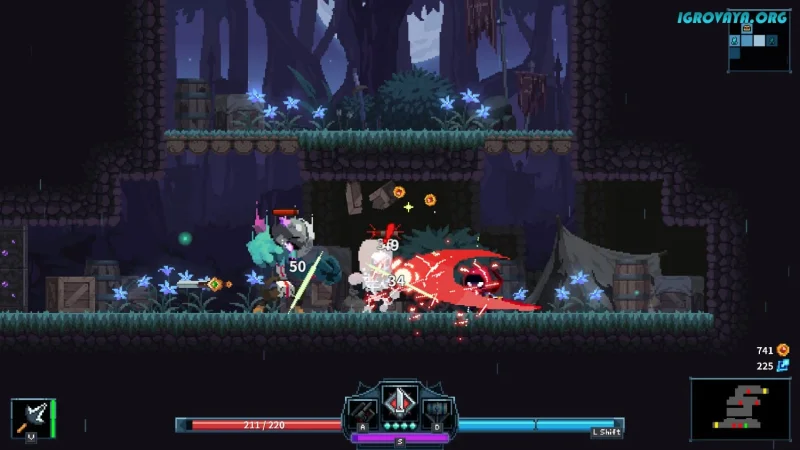 Это экшен-платформер в жанре «roguelite», который подарит вам возможность пройти через увлекательные двухмерные уровни. Во время путешествия вам предстоит не только сражаться с разнообразными противниками, но и преодолевать множество ловушек. Ваши навыки и сообразительность будут испробованы на прочность, ведь каждый уровень представляет собой настоящее испытание.