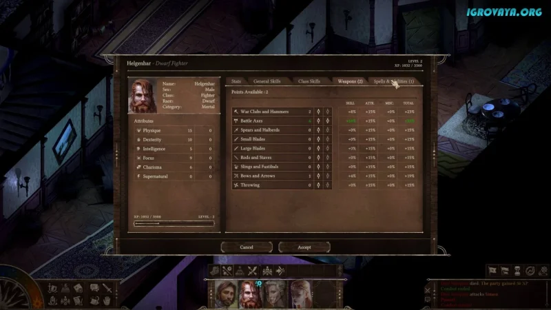 - Создание персонажа с выбором из нескольких классов и рас, включая Гномов, Эльфов и Человеков.