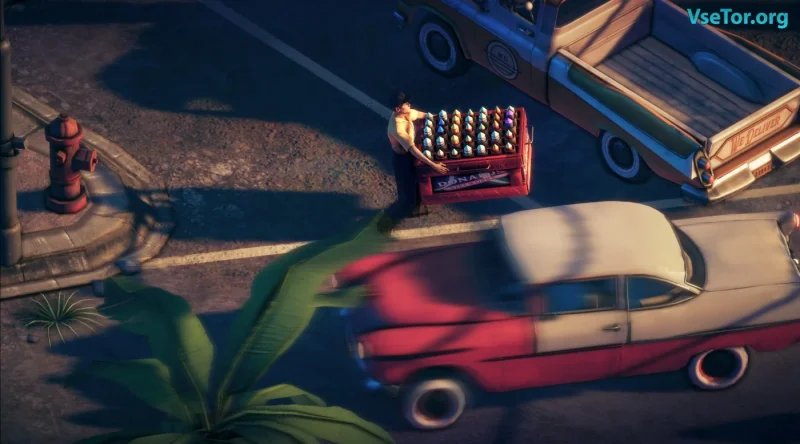 Deliver At All Costs - это увлекательная экшен-игра, выполненная в изометрической перспективе, где сливаются хаос, разрушение и атмосфера 1950-х годов. Главным героем является Винстон Грин, курьер, который постоянно попадает в необычные и опасные ситуации, связанные с доставкой эксцентричных грузов в мире, полном абсурда и разрушений. События разворачиваются в 1959 году, когда рок-н-ролл, яркие наряды и страх ядерной угрозы становятся верными спутниками его приключений.