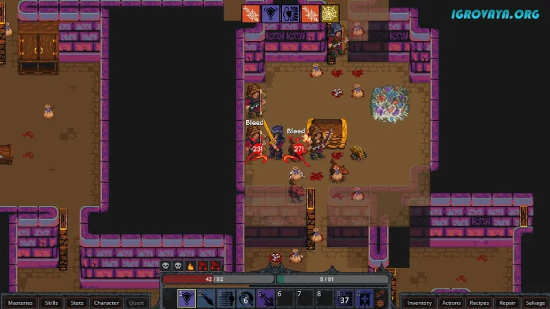 Вас ожидают невероятные приключения и удивительные открытия на просторах неизведанных земель. Каждый ваш забег будет уникален благодаря случайной генерации карт и локаций, что делает каждую сессию непохожей на предыдущую. Расположение трофеев и врагов также варьируется, так что вы всегда будете в напряжении, предвкушая, какая опасность поджидает за углом.