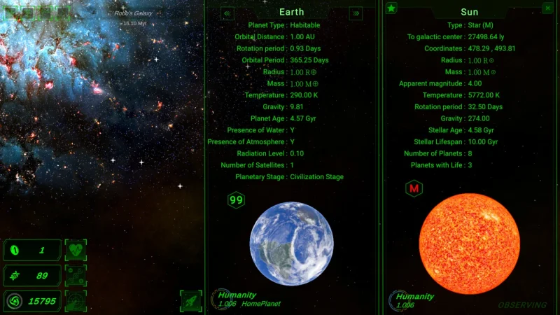 Galactic Simulator – это уникальная возможность исследовать глубины космической эволюции! Данная игра предлагает вам стать космическим наблюдателем и погрузиться в изучение развития жизни во Вселенной, опираясь на известные научные теории. Вы будете исследовать бескрайнюю галактику, открывая для себя новые звёздные системы и планеты, каждая из которых обладает уникальными характеристиками, основанными на реальных физических параметрах.