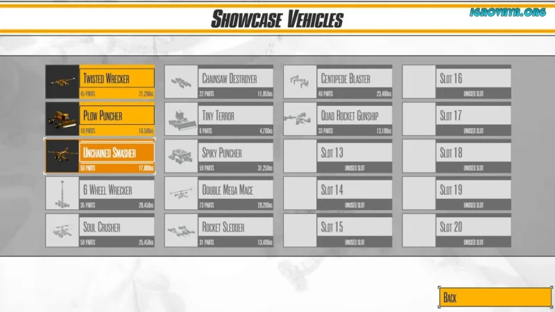 Тем не менее, будьте внимательны при проектировании вашего механизма — реалистичные законы физики могут сыграть с вами злую шутку, и с плохо продуманным агрегатом вы рискуете не удержаться на колесах. В Instruments of Destruction у вас есть шанс по-настоящему проявить свою креативность и разрушить все, что вас окружает, уникальными способами — это делает игру по-настоящему захватывающей и увлекательной.