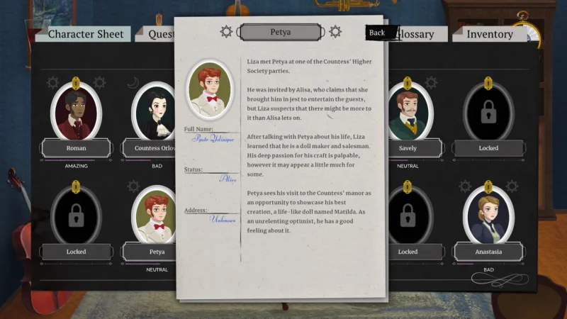 Вам придется помочь Лизе найти баланс между сохранением ее человечности и полным погружением в мир темных существ. Каждое ваше решение имеет значение и влияет на развитие событий, а также на отношения с окружающими персонажами. Лиза может манипулировать людьми для того, чтобы напиться их крови, или же приобретать кровь в бутылках, рискуя столкнуться с нехваткой средств на книги и наряды, улучшающие её навыки.