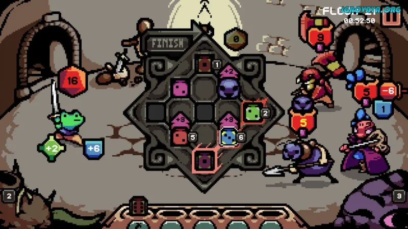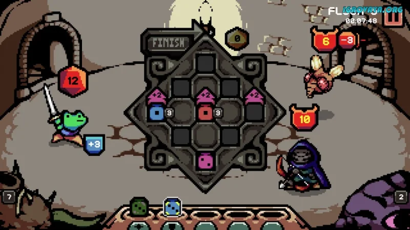 Во время боя вам предстоит выбирать кубики из доступных и размещать их на решетке, чтобы создать свою стратегию. Нажмите кнопку удара и посмотрите, какой эффект будет активирован вашей комбинацией. Будьте готовы к неожиданным сюрпризам: иногда вы можете нанести минимальный урон или, наоборот, вызвать мощный эффект.