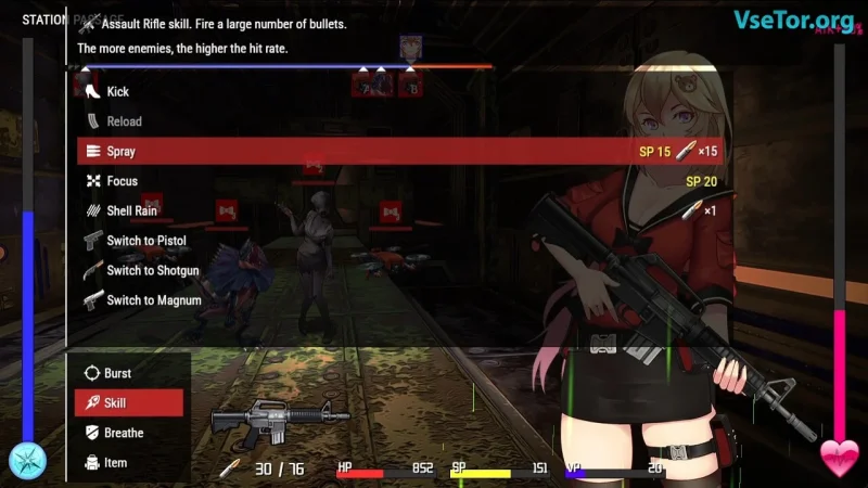 Бои в Tunnel Escape сочетают в себе элементы пошаговой стратегии и динамичного экшена. Используйте уникальные огнестрельные орудия, бросайте гранаты или вступайте в ближний бой, нанося удары каблуками — каждый ваш выбор может стать решающим. Лаборатория генерируется случайным образом, подкидывая ловушки, тайники и зомби с различными уязвимостями. Графика выполнена в аниме-стиле, с мрачной цветовой палитрой и кровавыми акцентами, в то время как звуки шагов и рычания создают угнетающую атмосферу.