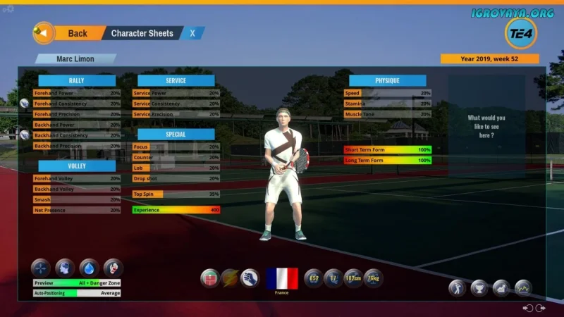 Tennis Elbow 4 — это продолжение знаменитой TE2013, которое добавляет множество свежих функций и возможностей. Благодаря мощному игровому движку, разработчики создали физику, учитывающую не только поведение мяча, но и характеристики всех объектов на корте, включая уникальные аспекты покрытия, влияющие на отскок. Вы можете скачать Tennis Elbow 4 торрент у нас прямо сейчас и убедиться в этом сами. Наблюдайте за плавными анимациями и проверьте свою реакцию в игре: вам необходимо быстро реагировать на события и точно определять траекторию мяча.