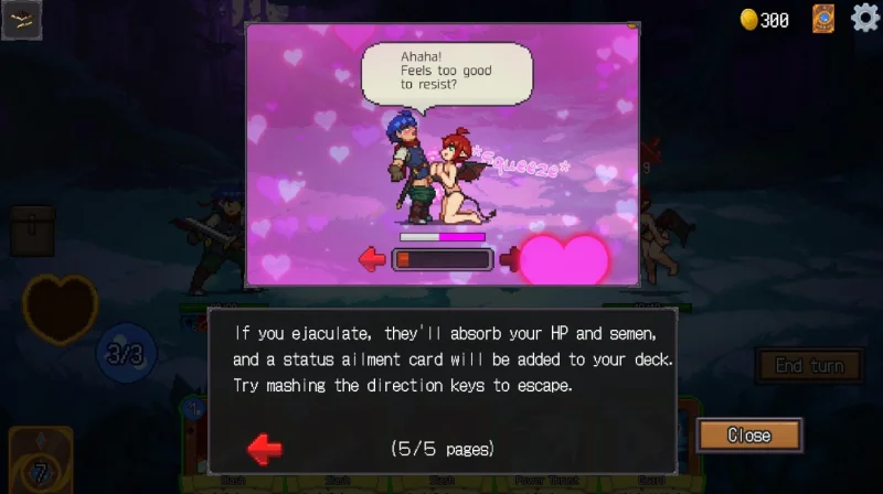 Ваше путешествие в Succubus Forest — это не просто прогулка, а настоящее испытание, где каждое ваше решение проверяет вашу стойкость и способность противостоять соблазнам. Игра сочетает в себе элементы рогалика и карточного боя: вы собираете уникальную колоду из сотен карт, с помощью которых выбираете, как атаковать, защищаться или усиливать свои способности. Сражения с противниками становятся не только испытанием силы, но и игрой на грани, поскольку их атаки полны эротики, а шкала вожделения добавляет дополнительного напряжения.