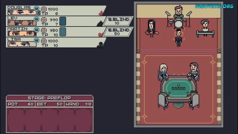 - Возможность сыграть не только в покер, но и в другие карточные и мини-игры для расслабления.