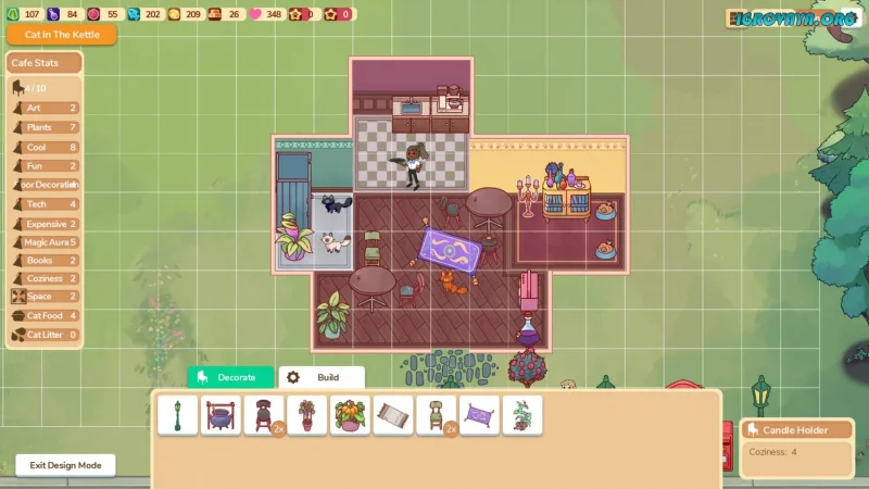Однако в игре Cat Cafe Manager есть и другая сторона — каждое животное обладает своим характером. Кому-то нравится общение с художниками, а другие предпочитают компанию местных ведьм. Поэтому от того, как вы будете заботиться о котах, зависит, кто же из них решит остаться у вас. Игра обладает яркой мультяшной графикой, согревающей душу музыкой и уникальным стилем, что позволяет насладиться каждой минутой игр. Но дело не только в милоте — в деревне скрыто множество тайн. Общаясь с местными жителями, такими как музыкант Финли или паромщик Боннер, вы постепенно раскрываете захватывающие истории и секреты этой местности. Чем больше котов вы приютите и комфортнее станет ваше кафе, тем ближе вы подойдете к разгадке загадок, например, забытого храма кошек в соседнем лесу. Заработок приходит от гостей, каждый из которых платит по-своему, а вы можете использовать средства на новые лакомства или ремонт кафе.