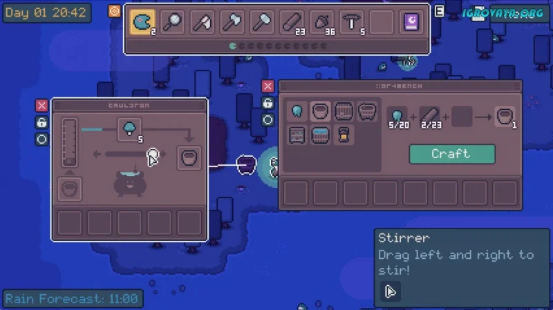 Заброшенный пруд, где когда-то царила жизнь, пробуждается к новым свершениям. В Mudborne: Frog Management Sim вы выступаете в роли маленькой лягушки, которая должна восстановить утраченную красоту этого уголка, пострадавшего от загадочной бури. Начало путешествия простое: вам предстоит собирать травы и ловить насекомых, а позже вы окажетесь в процессе создания волшебной грязи, смешивая ее с порошком из грибов.