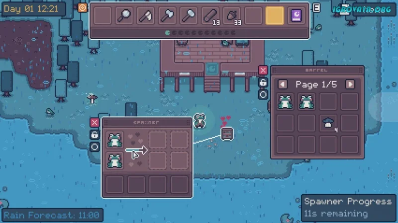 Пруд не просто локация — это целая история, где вы являетесь хранителем экосистемы. Ловите мухи, делитесь заботой о малышах и раскрывайте тайны прошлого. Генетика и разведение — это не просто механика, а способ возвратить природу к жизни. Большая карта не давит на вас, предоставляя свободу действий и позволяя размещать ваши вещи по собственному желанию. В этом мире, где лягушки в шляпах становятся частью большого замысла, вы найдете свои приключения.