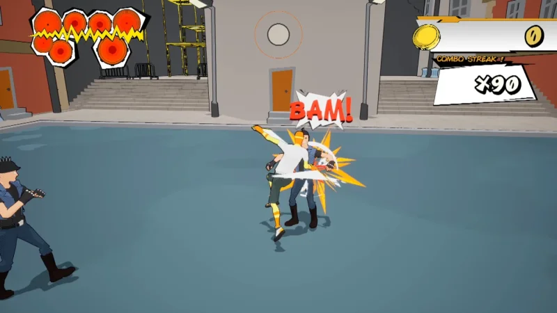 Геймплей DRUMGUY соединяет лучшие традиции ритм-игр с динамичными экшн-составляющими: здесь необходимо не просто попадать в ритм, но и отражать атаки противников, синхронизируя свои удары с музыкальным битом. Уличные схватки трансформируются в музыкальные баттлы, где каждая ошибка может привести к неудаче. Город BOP CITY с его яркими неоновыми улицами и концертными площадками выглядит как настоящий комикс — стиль cel-shading идеально передает бунтарский дух игры. Уровни короткие, но насыщенные, и постоянно удивляют новыми механиками: то вам нужно отразить натиск фанатов в переулках, то принять участие в импровизированном джем-сейшне на крыше.