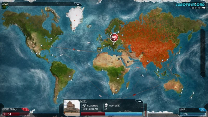 Plague Inc Evolved — это уникальная стратегия-симулятор, в которой вы возьмете под контроль не армию, а смертоносный вирус. Ваша цель заключается не в том, чтобы защищать человечество, а, наоборот, в том, чтобы заразить как можно больше людей. Это захватывающее испытание требует от вас мыслить нестандартно и действовать решительно.