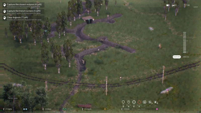 - Тактическое управление четырьмя отрядами солдат.
