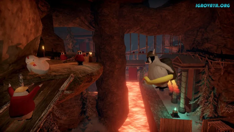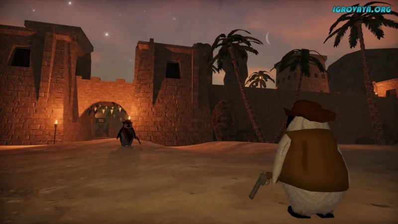 Герои постоянно сталкиваются с проблемами из-за забавной регдол-физики: пингвины неуклюжие, порой смешно падают и ведут себя непредсказуемо. Это добавляет игре особый шарм и заставляет каждый уровень проходить заново с улыбкой. Механика проста, но увлекательна: головоломки, стелс, сражения и использование огнестрельного оружия плавно переплетаются, создавая живую и захватывающую атмосферу.