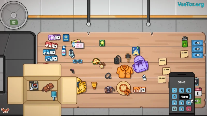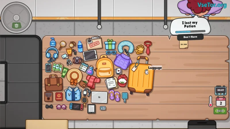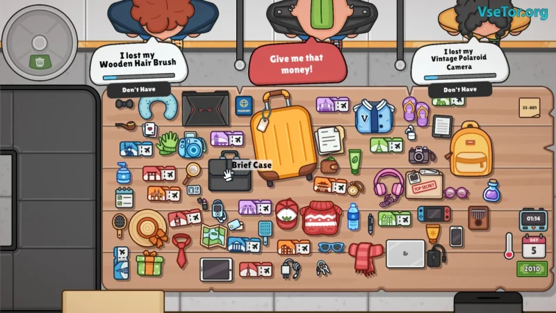 Игровой процесс — это оригинальное сочетание головоломок, поиска спрятанных предметов и управления стрессом. На вашем рабочем столе скапливается гора вещей, а клиенты требуют вернуть конкретные вещи в считанные секунды. Внимание к деталям становится важнее всего — не перепутайте деревянную расчёску с обычной! Хотите расслабиться? Включите режим «Чилл», где нет жёстких временных рамок. Для тех, кто любит вызовы, «Хаос» создаст настоящий праздник из аэропортной суеты, словно это рождественский день, когда каждый теряет паспорт.
