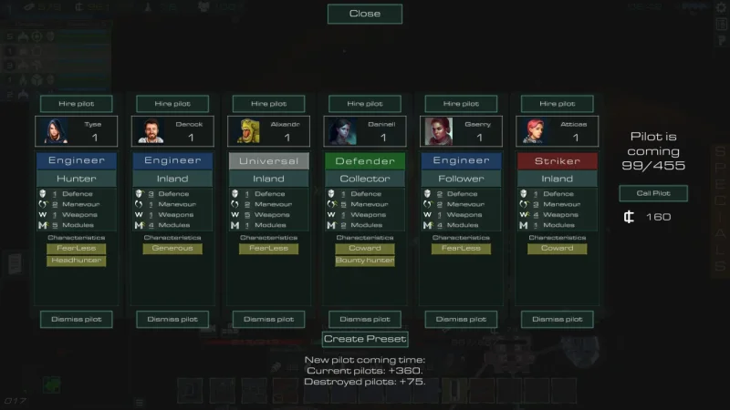 Главная изюминка — отсутствие скучного микроменеджмента. Каждый пилот — уникальная личность со своими целями и предпочтениями. Одни охотно идут на риск ради вознаграждений, другие охраняют пути, ворча по радару. Ваша задача — задать приоритеты, например, повысить награду за уничтожение пиратов, а дальше всё решают они. Корабли — не просто набор характеристик, а настоящие бойцы от «Фантома» с невидимостью до тяжеловеса «Громовержца», который тянет за собой арсенал.